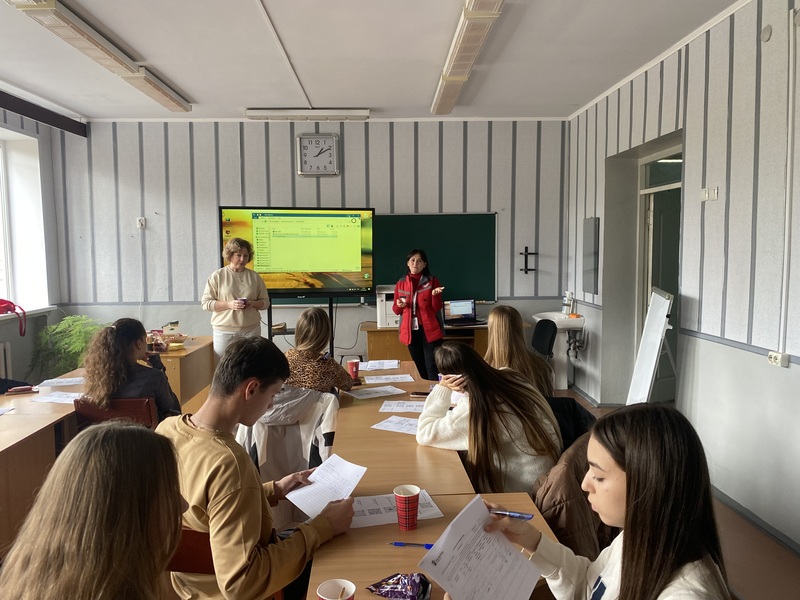 Головний спеціаліст відділу молоді та спорту управління молоді спорту та культури Оксана ПОДВИСОЦЬКА розповіла учням про роботу управління, проєкти й гранди, в яких участь учнів була б перспективною як у розвитку й житті громади, так і особистому. Оксана розповіла про громадський бюджет, про створення молодіжної ради, волонтерство. САБАДИР Анастасія - фахівець з розвитку волонтерства та організації Південноукраїнського представництва Українського Червоного хреста Миколаївської області, розповіла присутнім про діяльність організації в громаді, про місію та можливості.