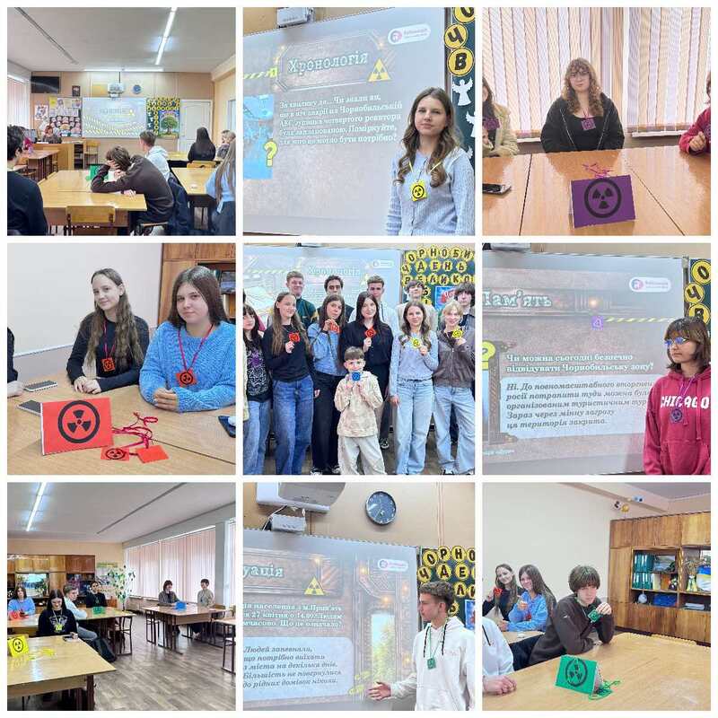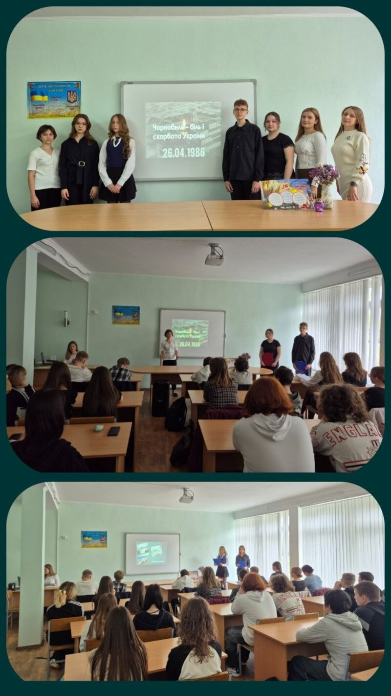 З метою відзначення 40–х роковин Чорнобильської катастрофи, вшанування пам’яті ліквідаторів аварії, формування базових уявлень про радіаційну безпеку, виховання екологічної відповідальності та гордості за героїчне минуле свого народу з 20 квітня по 26 квітня 2026 року у закладах середньої освіти громади проведено лінійки-реквієм «Чорнобиль: біль, пам`ять, пересторога» «Світло пам’яті», «Дзвони Чорнобиля», тематичні години спілкування «Герої ліквідатори: подвиг заради життя», «Чорнобильський вимір - жива історія», «Чорнобильський вітер по душах мете», «Чорнобиль – біль і скорбота України», «Чорнобиль не має минулого часу», «Чорний біль нашої землі», уроки мужності «Чорнобиль: трагедія, подвиг, пам`ять», круглий стіл «Чорнобиль: минуле, сьогодення та майбутнє». Для учнів 5-11 класів проведено конкурс малюнків та плакатів: «Екологія мого краю», «Чорнобиль в моєму серці», «Чорнобильська весна», організовано перегляд документальних фільмів, авторського кіно про Чорнобильську трагедію. На уроках історії обговорено фільм «Справжня причина вибуху на ЧАЕС: хто винен у найбільшій техногенній катастрофі людства». Учнями 9-11 класів здійснено віртуальну екскурсію у Національний музей «Чорнобиль». У бібліотеках закладів освіти виставлено книжкові виставки «Ціна безпечного атома», «Чорнобиль крізь призму часу». Особливу увагу на заходах приділено подвигу ліквідаторів — людей, які проявили надзвичайну мужність і самопожертву, рятуючи інших. Їхній приклад є важливим нагадуванням про силу людського духу та відповідальність.