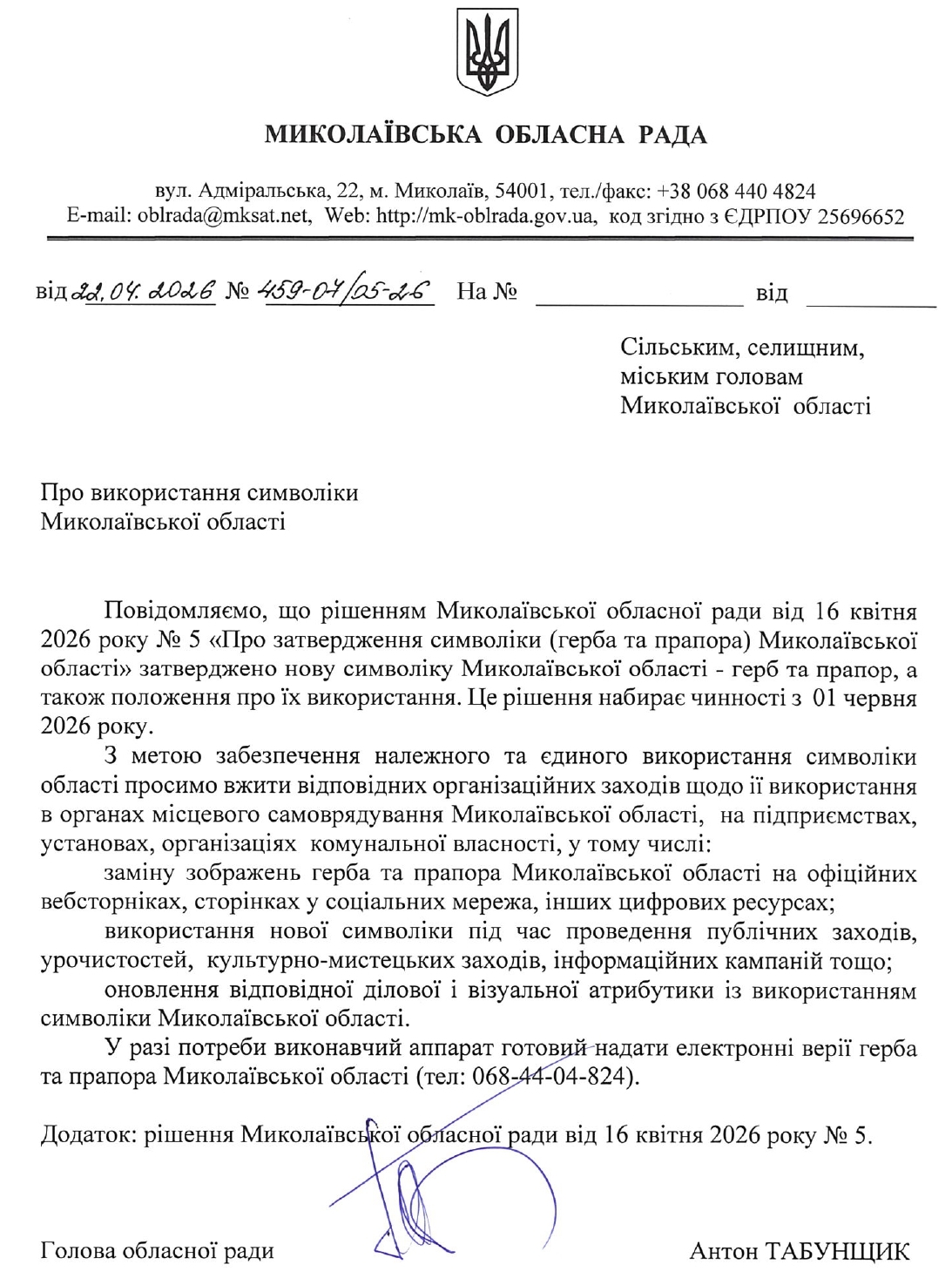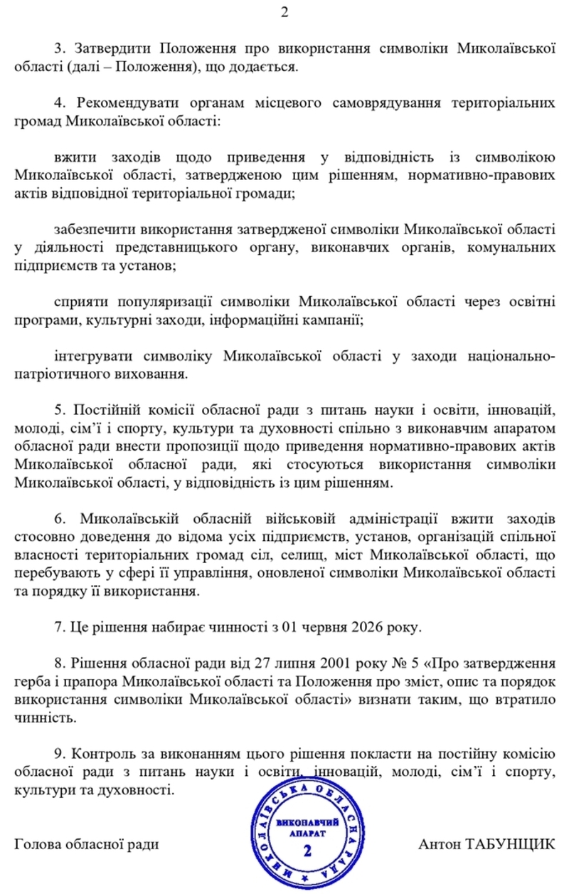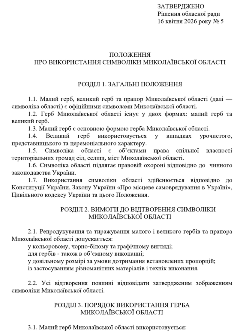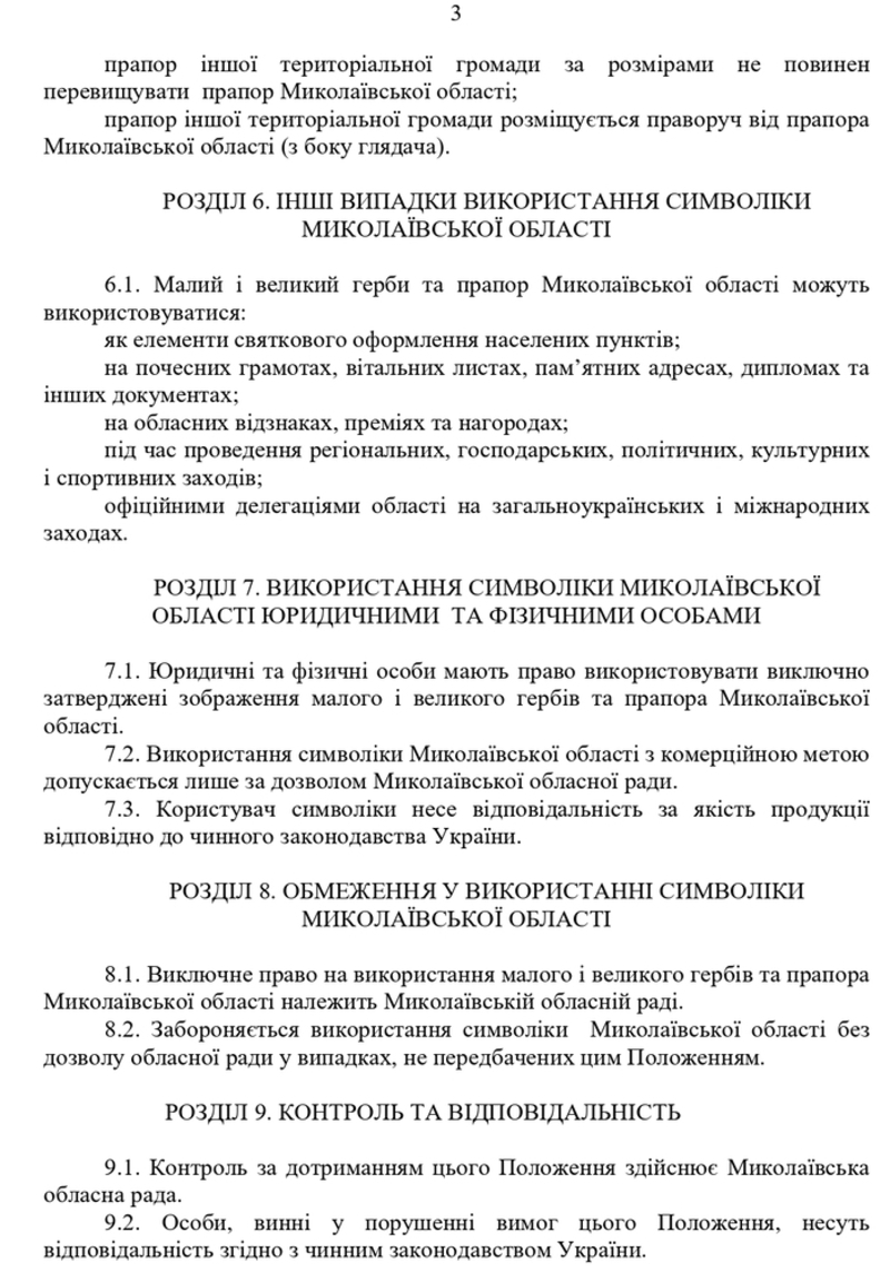 Про використання символіки Миколаївської області