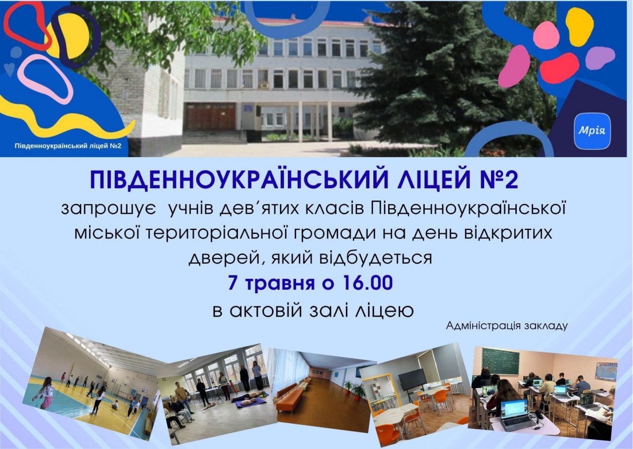 Південноукраїнський Ліцей №2 запрошує