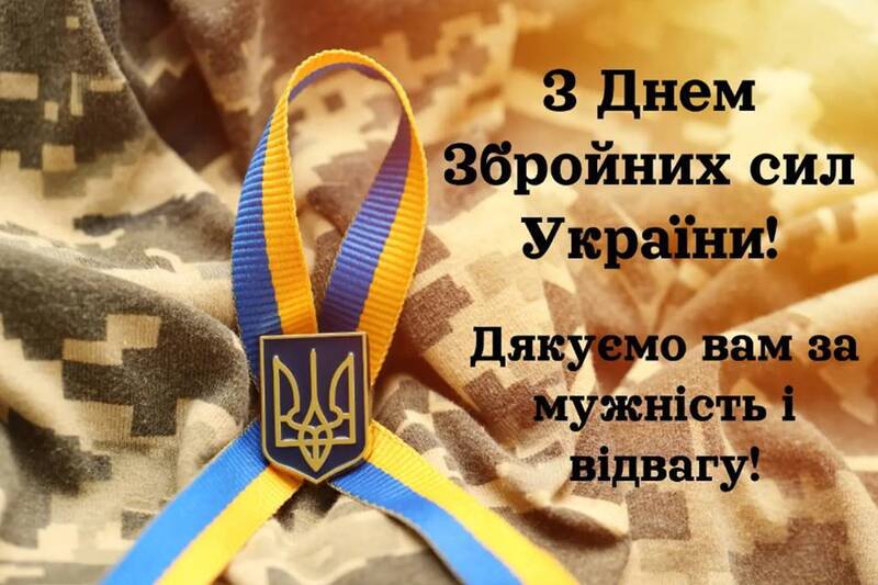 Напередодні Дня збройних сил України бажаємо всім військовим, які захищають країну на передовій, охороняють її кордони на землі, у воді та в повітрі, міцних сил і незламної віри, переможних ідей та добрих надій, впевнених планів та успіху. Завдяки їх незламному духу Україна досі залишається суверенною незалежною державою, продовжує жити, працювати та боротися.