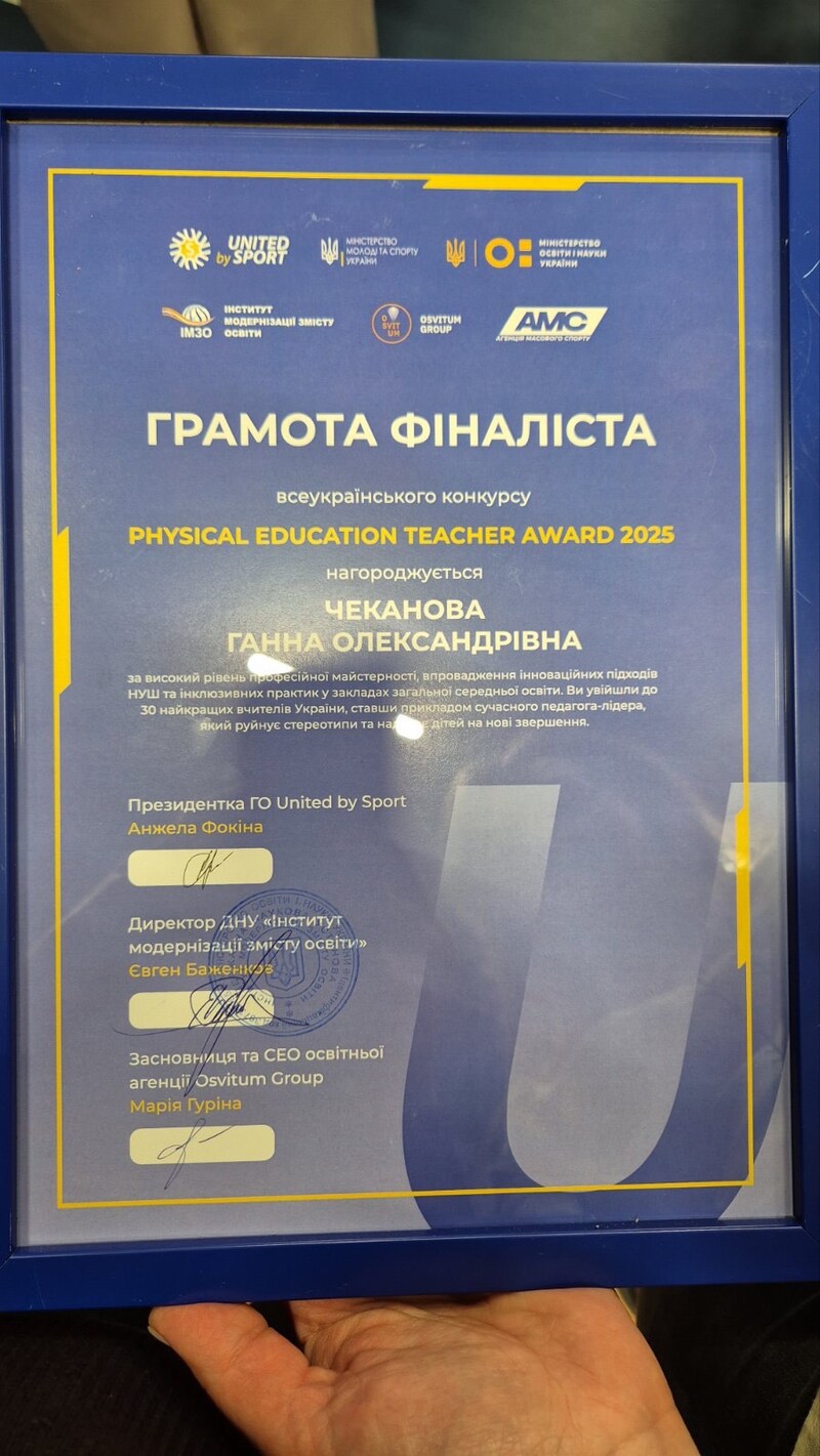 26 лютого 2026 року в місті Києві на базі Racket SportsPark Kyiv за участю керівництва Міністерства освіти і науки України та Міністерства молоді та спорту України відбулася церемонія нагородження фіналістів Всеукраїнського конкурсу Physical Education Teacher Award 2025. Ініціатором Конкурсу є Громадська організація "United by Sport" за підтримки та у співпраці з ДНУ "Інституту модернізації змісту освіти" та OSVITUM GROUP у межах чинної благодійної програми "Нова фізична культура". Серед кращих учителів фізичної культури України було визначено Чеканову Ганну Олександрівну, учителя Південноукраїнського ліцею № 2. У конкурсі взяли участь 300 учителів фізичної культури України, а у фінал були відібрані тільки 30. Щиро вітаємо Ганну Олександрівну! Бажаємо їй подальших успіхів, досягнень та перемог!!!