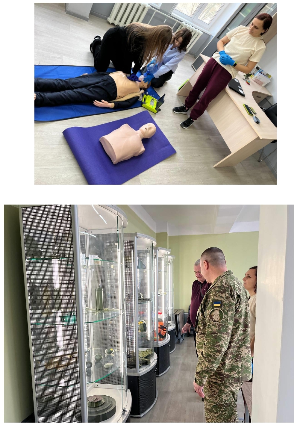 Учителі предмету «Захист України» разом з учнями 10 – 11 класів ліцею №2 продемонстрували присутнім вміння працювати з радіостанціями та встановлювати радіозв’язок, керувати БПЛА та їх пілотуванням, користуватися сучасними зразками зброї, лазертагом, лазерним стрілецьким тренажером, симулятором польоту дронів, тренажером для тампонування ран, накладати турнікети, користуватися дефібрилятором та робити серцево-легеневу реанімацію.