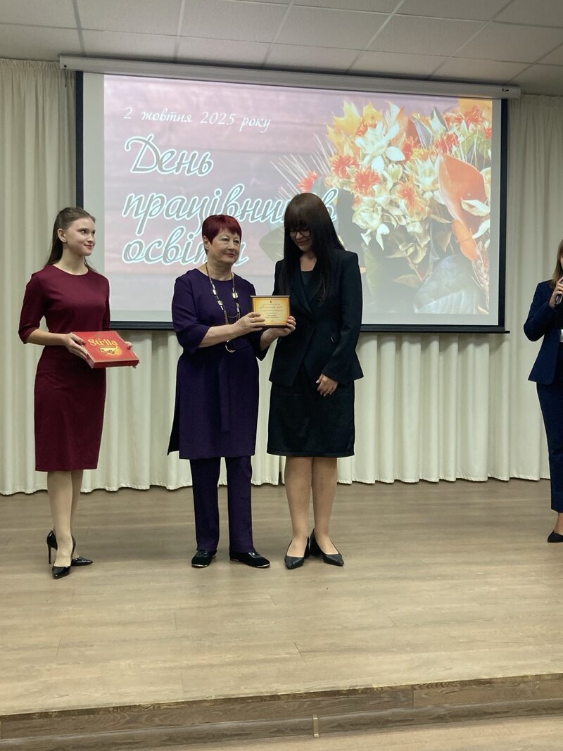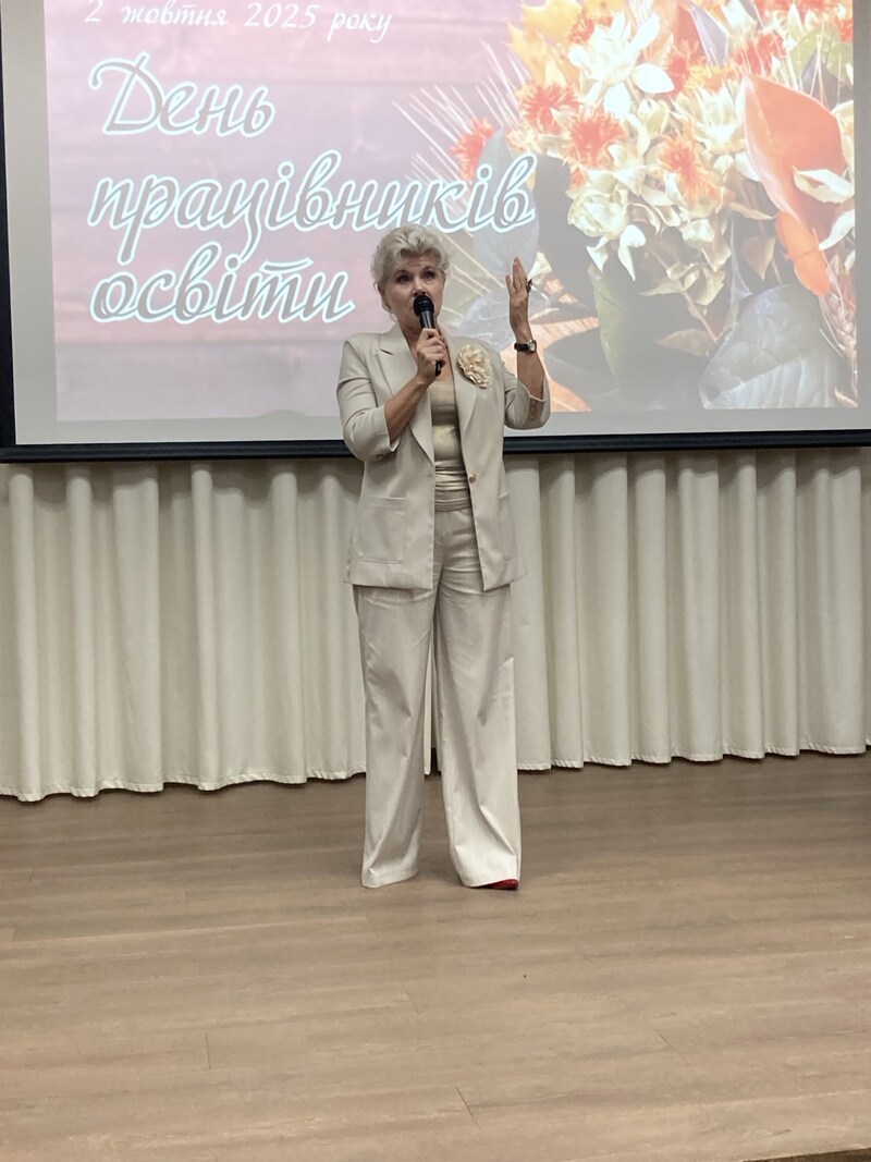 Присутніх теплими словами від керівництва міста, депутатів міської ради, виконавчого комітету привітала заступник міського голови з питань діяльності виконавчих органів ради Марія ДРОЗДОВА. У своїй промові вона відзначила нелегку працю освітян, особливо у воєнний час; звернула увагу на те, що результат роботи закладів освіти, як правило видно не одразу, а через певний час, який вимірюється десятками років; побажала витримки, творчого зростання і достойної оцінки праці освітян на рівні держави.